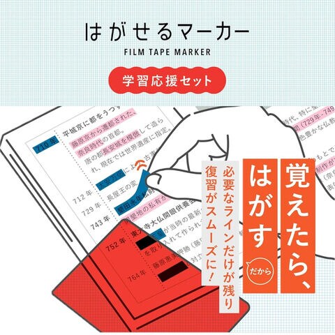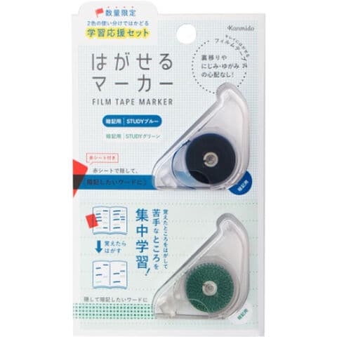 はがせるマーカー 限定 学習応援セット 赤シート付 STUDYブルー・COLORグリーン 隠すタイプ フィルムテープ式 暗記