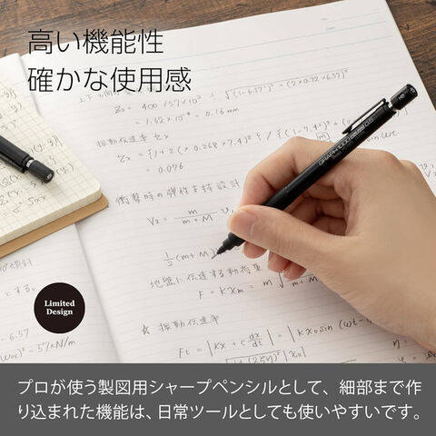 ぺんてるの製図用シャープペンシルにおいて長年親しまれてきた伝統の「黒」を基調とし、プロツールとして細部までこだわった限定モデルに仕上げました。