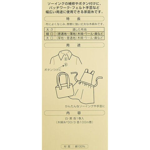 布によくなじみ、摩擦に強い丈夫な木綿糸です。