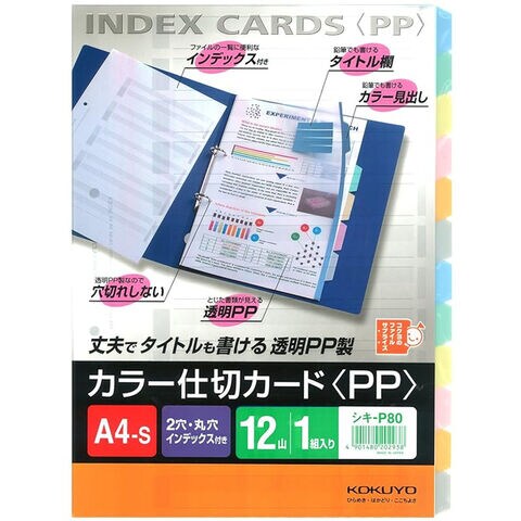 【1000円以上お買い上げで送料無料♪】コクヨ カラー仕切カードPP(ファイル用)A4縦2穴12山見出し1組 - メール便発送