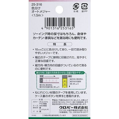 【1000円以上お買い上げで送料無料♪】色分け オートメジャー 1.5m ソーイング クロバー - メール便発送のレビュー
