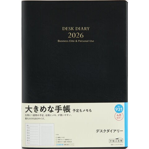 高橋書店 2026年 手帳・ダイアリー 3月始まり 【931】デスクダイアリー B5 1週間+メモ 黒