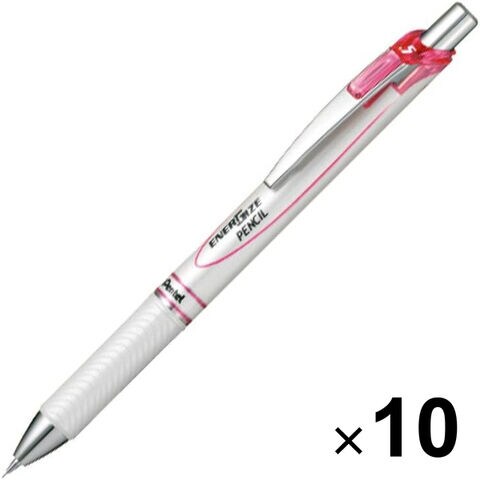 ぺんてる シャープペンシル エナージェルシャープ 0.5mm パールホワイト/ピンク軸 PL75-PW 10本セット