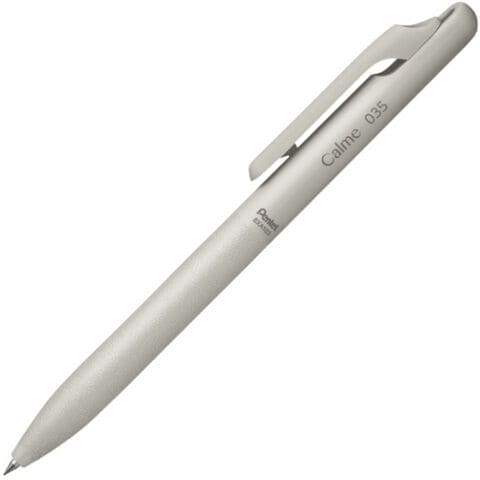 油性ボールペン Calme カルム 0.35mm グレー軸 インク色/黒 静音 ノック音 革調グリップ 高発色 なめらか ぺんてる