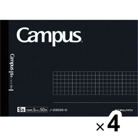 【送料無料】【4冊セット】 コクヨ キャンパスノート ハーフサイズ B6 無線とじ 5mm方眼罫 黒 クラフトボス グレー罫 ビジネス 学習 日本製 - メール便発送