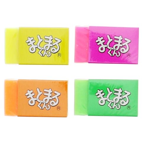 ソフトタイプで力を入れず軽く消すだけでよくきえます。 カラフルで元気な蛍光色4色。サイズ:25×45×14mm