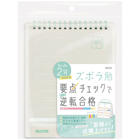 ズボラ勉強 要点チェックリスト 100日分 2連メモ スタンドタイプ A5 オフホワイト ふせん付 ToDo 学習計画 受験