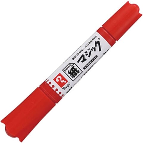 【1000円以上お買い上げで送料無料♪】紙マジック 赤 水性顔料マーカー ツイン 太字/細字 裏うつりなし にじみにくい 高発色 インキ補充式 寺西科学 - メール便発送