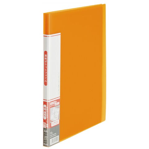 透明ポケットファイル 20ポケット オレンジ クリアーファイル 中紙入 溶着式 透明タイプ 書類 整理 管理 プラス