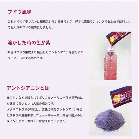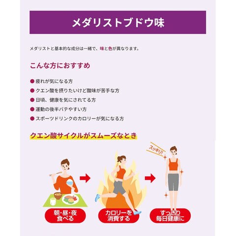 クエン酸特有の酸っぱさが苦手な方におススメ、飲みやすい「ブドウ味」です。