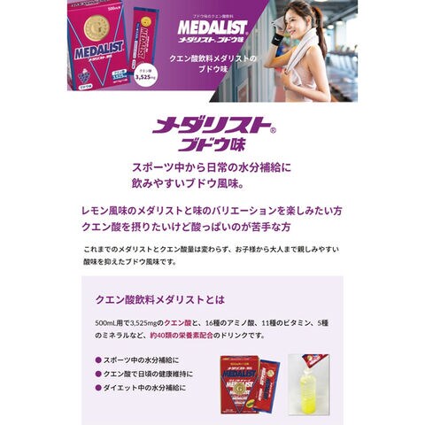 クエン酸飲料 メダリスト ブドウ味 500ml用×12袋 低カロリー スポーツ 健康維持 ダイエット 水分補給 アリスト