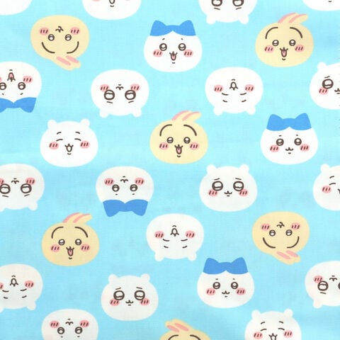 【送料無料】【オックス】 生地 ちいかわ フェイス 幅約110cm 約100cm カット ブルー ハンドメイド 入園 入学 かわいい - メール便発送