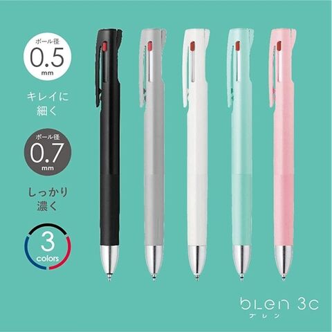 【1000円以上お買い上げで送料無料♪】3色 エマルジョンボールペン ブレン3C 0.7mm ブルーグリーン 耐水性 スリム ゼブラ - メール便発送