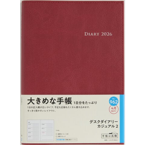 【送料無料】高橋書店 2026年 手帳・ダイアリー 3月始まり 【962】デスクダイアリーカジュアル2 A5 見開き1週間 レッド - メール便発送