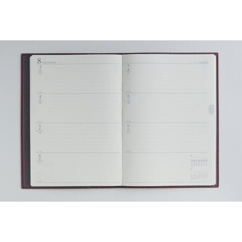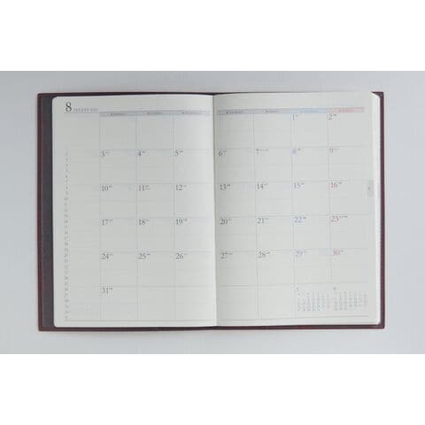 月間ページと週間ページがそれぞれまとまって収録されているので、月をまたぐ予定管理に便利!ビジネスシーンでも使いやすい、スタンダードな記入形式を揃えています。また紙面のレイアウトは上品なフォントと紙面になじむ刷色を採用しているので、ストレスなくお使いいただけるのも人気の理由です。