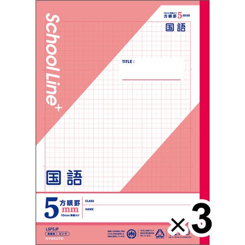 【1000円以上お買い上げで送料無料♪】【3冊セット】 学習帳 スクールラインプラス セミB5 5mm方眼罫 科目名入 国語 LSP5JP 小学3年/4年/5年/6年生 授業 - メール便発送