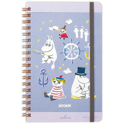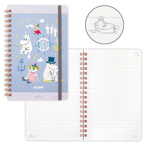 ムーミン リングノート B6 スリム変形 Let's have a Happy Journey 海への憧れ ブルー 横罫 ゴムバンド付 かわいい