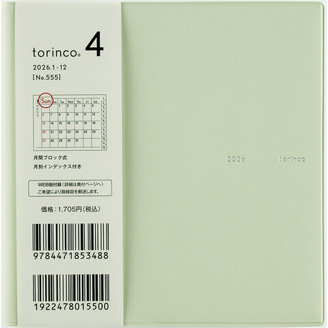 高橋書店 2026年 手帳・ダイアリー (555) torinco4 (ミルクグリーン) B6変型 ミルクグリーン 見開き1か月
