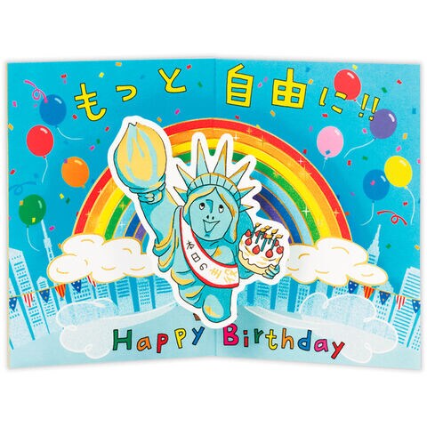 【1000円以上お買い上げで送料無料♪】誕生お祝い 立体カード ユーモア動像 青空と自由の女神 ポップアップ バースデー メッセージ かわいい ミドリ - メール便発送