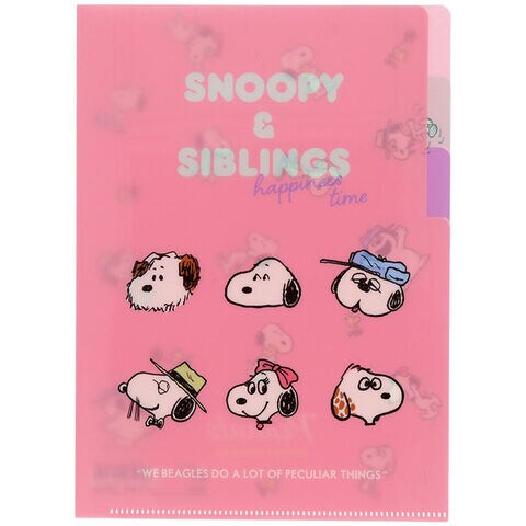 スヌーピー クリアファイル A5 3ポケット ピンク 仕分け きょうだい ピーナッツ かわいい 日本製 サンスター文具