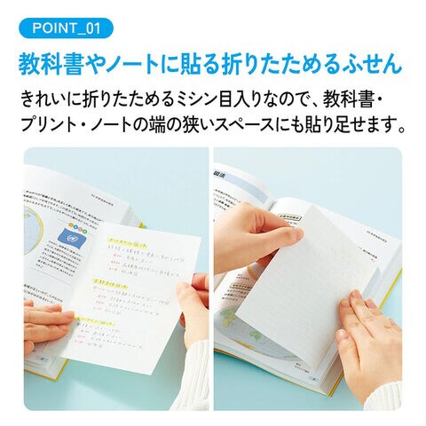 教科書や資料にメモやまとめを書き足したり、プリントに問題の解説を貼ったり、板書をまとめるのに最適。