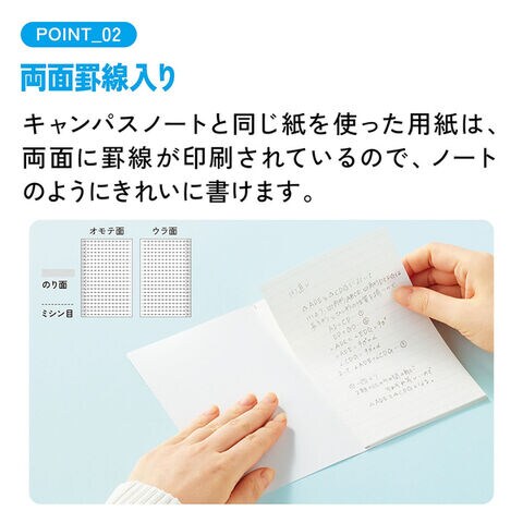 両面にドット入り罫線が入っているので、ノートのようにきれいに書けます。