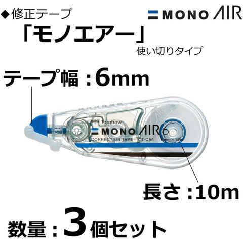 3個まとめ買い トンボ鉛筆 修正テープ MONO AIR モノエアー 詰め替えタイプ 本体 6mm幅