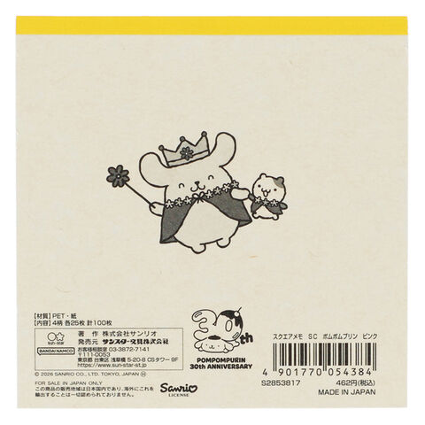 ポムポムプリン スクエアメモ ピンク 9.5cm 4柄×各25枚 PET表紙 30周年 かわいい 日本製 サンスター文具