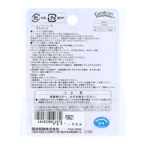 ポケットモンスター シールワッペン アチゲータ シール・アイロン両用 帽子 バッグ スマホ 目印 入園 入学 稲垣服飾
