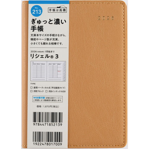 【送料無料】高橋書店 2026年 手帳・ダイアリー (213) リシェル3 A6 ミルクキャラメル 見開き1週間 - メール便発送