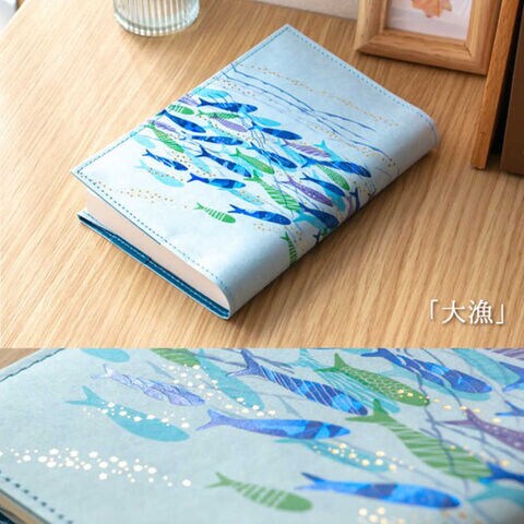 ブックカバー ROKKAKU×みすゞうた 大漁 1枚 文庫本サイズ対応 箔押し 高級感 サスティナブル 大人かわいい 日本製