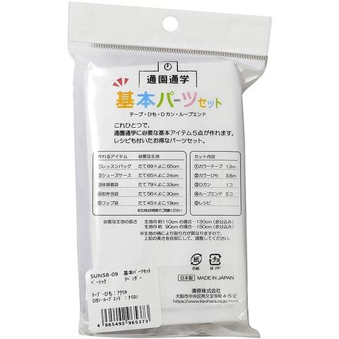 これひとつで通園通学に必要な基本アイテム5点(レッスンバッグ、シューズケース、体操着袋、お弁当袋、コップ袋)が作れます。
