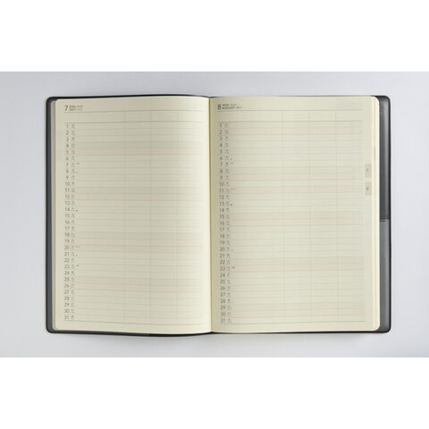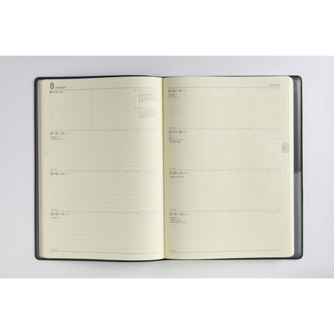 ビジネスシーンにふさわしいシックなカバー。B5判の大きくて見やすい紙面。月間ページはタスク管理に最適な横罫式、週間ページは見開き1週間のセパレート式で、毎週の重要事項記入欄なども充実。ビジネスシーンではもちろん、日記としてもご活用いただけます。