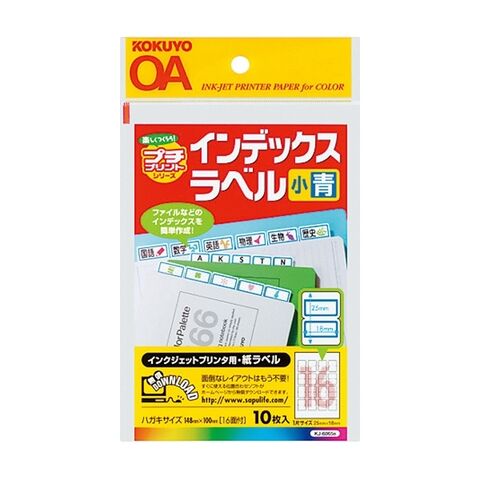 【1000円以上お買い上げで送料無料♪】コクヨ インクジェット紙ラベル ハガキ インデックス16面10枚青 - メール便発送
