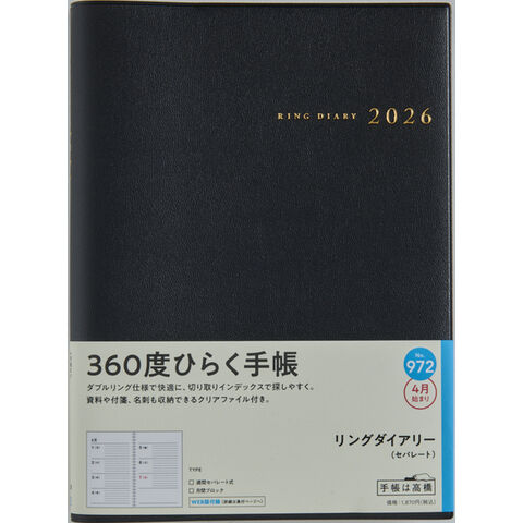【送料無料】高橋書店 2026年 手帳・ダイアリー 4月始まり 【972】リングダイアリー A5 見開き1週間 黒 - メール便発送