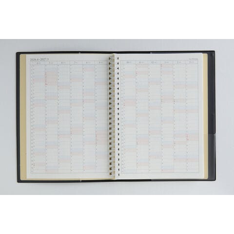 360度開くダブルリング式手帳は隅々まで書くのに便利。各ページには、切り取りインデックスも付いているので開きやすい仕様になっています。機能性抜群でリピーターが多い手帳です。