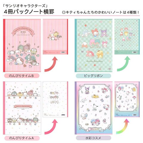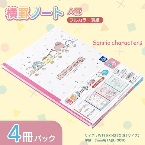サンリオキャラクターズ ノート B5 A罫/7mm横罫 4冊パック キティ/プリン/クロミ/シナモロール/ハンギョドン かわいい