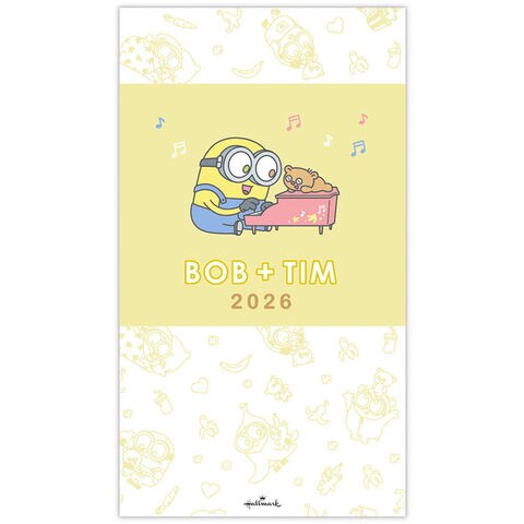 【1000円以上お買い上げで送料無料♪】ミニオン 2026年 手帳 スリム マンスリーダイアリー ボブ&ティム 月間ブロック 10月始まり カバー付 かわいい - メール便発送