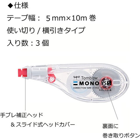 トンボ鉛筆 修正テープ モノYS5 5mm 3個パック ヨコ引き 使い切り 10m スライド式カバー 学校 事務