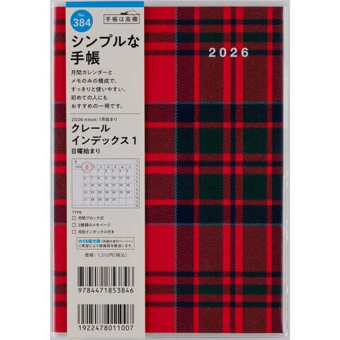【送料無料】高橋書店 2026年 手帳・ダイアリー (384) クレールインデックス1 B6 チェック 見開き1か月 - メール便発送