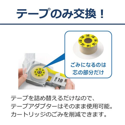 ・テープを詰め替えるだけなので、テープアダプターはそのまま使用可能。原材料のCO2排出量を60%以上カット。