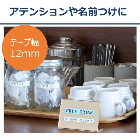 カシオ ラベルライター ラテコ 詰め替え用テープ 白に黒文字 12mm×8m XB-12WE