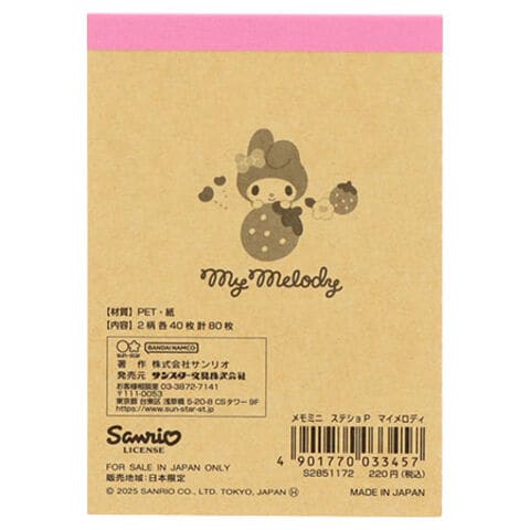 【1000円以上お買い上げで送料無料♪】マイメロディ メモミニ 2柄×各40枚 PET表紙 ステショ・パステル サンリオ ジュニア かわいい 日本製 サンスター文具 - メール便発送