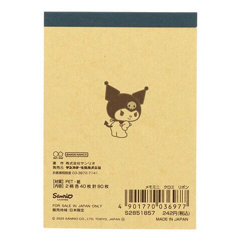 【1000円以上お買い上げで送料無料♪】クロミ メモミニ リボン 2柄×各40枚 ピンク×黒 ハート PET表紙 伝言 20周年 人気 かわいい サンスター文具 - メール便発送