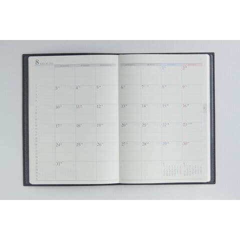 月間ページと週間ページがそれぞれまとまって収録されているので、月をまたぐ予定管理に便利!ビジネスシーンでも使いやすい、スタンダードな記入形式を揃えています。また紙面のレイアウトは上品なフォントと紙面になじむ刷色を採用しているので、ストレスなくお使いいただけるのも人気の理由です。