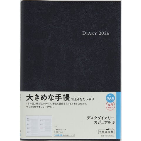 【送料無料】高橋書店 2026年 手帳・ダイアリー 3月始まり 【965】デスクダイアリーカジュアル5 A5 見開き1週間 ダークネイビー - メール便発送