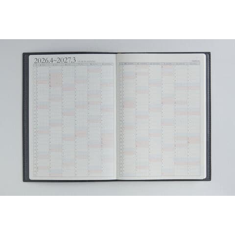 【月間予定表】カレンダーと同じような感覚で見ることができ、その月全体を俯瞰しやすいブロック式。 【週間予定表】左ページには4日分のスケジュール欄、右ページには3日分のスケジュール欄とメモスペースを掲載。1日分の記入スペースが広いので、ビジネスユースはもちろん、ちょっとした日記としてもご使用いただけます。