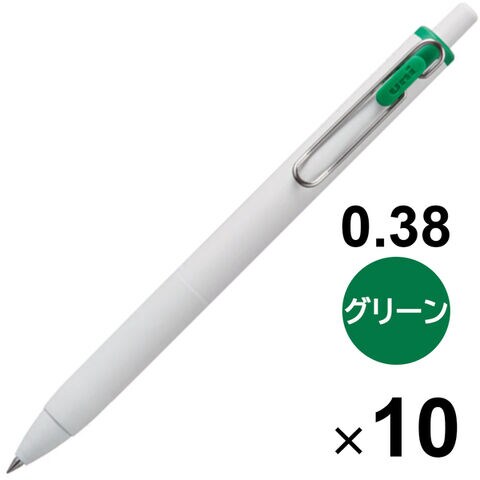 【送料無料】【10本セット】 ゲルインクボールペン uni-ball one ユニボール ワン 0.38mm グリーン ノック式 速乾 高発色 勉強 受験 三菱鉛筆 - メール便発送