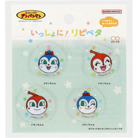 それいけ!アンパンマン いっしょに!リピペタ フェイス ドキンちゃん・コキンちゃん 4柄入 くり返し使える クリアシール