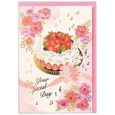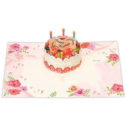 【送料無料】オルゴールカード バースデーケーキ ポップアップ バースデーソング 誕生日 グリーティングカード お祝い 上品 華やか - メール便発送